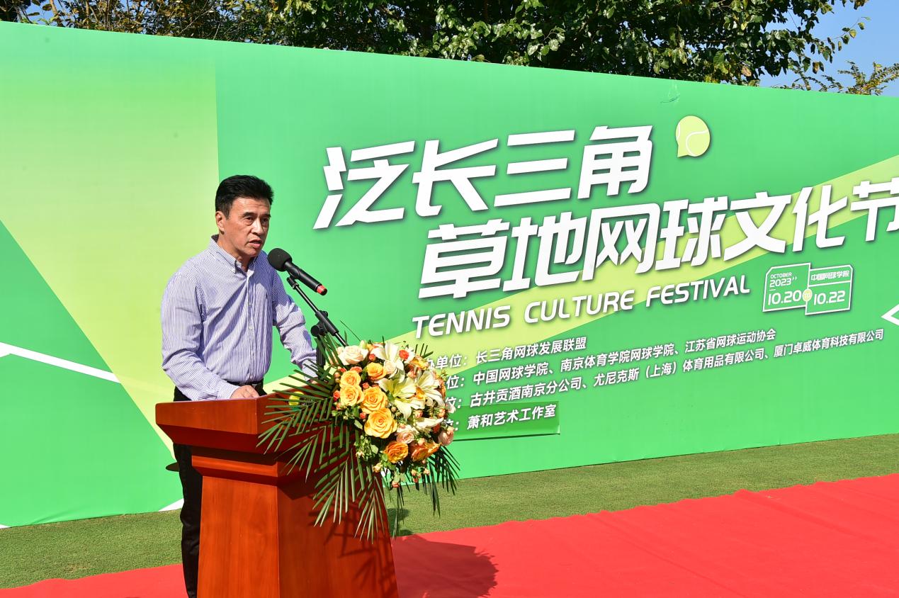 在开幕式上,中国网球协会副主席、中国网球学院院长、江苏省网球运动协会会长蒋宏伟发表讲话,希望通过本次活动,进一步推广和弘扬网球绿色文化,感受草地网球高尚的文化氛围和礼仪,发现网球运动更多的内在美,回归网球崇尚绿色、敬畏自然的本质,提升网球运动文化品味和内涵,促进区域间网球融合发展,扩大“六省一市”深度合作与交流。