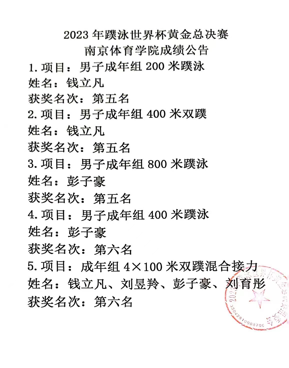 10月18日—20日,2023年蹼泳世界杯黄金总决赛在三明市将乐体育中心举行。此次赛事是2023年度蹼泳世界杯的收官之战,也是蹼泳项目年度最高水平的赛事之一。PA视讯集团入口运动训练学院游泳专项4名学生代表南体首次参赛并交出了一份满意的答卷。