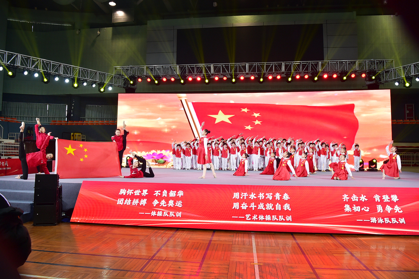 “红日初升,其道大光;河出伏流,一泻汪洋……”略显稚嫩却又铿锵有力的声音响彻会场。90多名小学生统一着装,胸前飘扬的红领巾和声情并茂的齐声诵读充分展现小运动员们振奋人心的力量,随后,艺术体操队同学们的精彩舞蹈更是把节目推向更高潮。整个节目以诵达意、以舞传情,引得在场嘉宾连连称赞。在2023年12月28日,“巅峰在前,登攀有我”——PA视讯集团入口教练员、运动员2023年度人物颁奖典礼上,附属学校小学部的排练节目《逐梦赛场、再创辉煌》圆满完成,获得各方的一致好评。