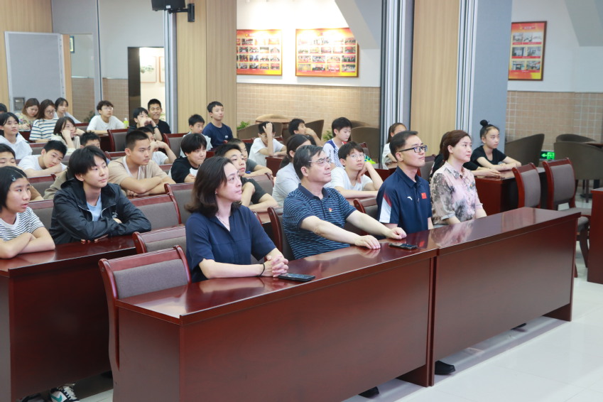 在工会大会议室,大学生宣讲团成员张璐垚、严婉榕为中学生讲授“弘扬中华体育精神”主题微课。课堂上,张璐垚先就“何为体育精神”话题与学生开展互动,图文并茂展示毛泽东同志等老一辈党和国家领导人事迹,引导同学们向他们学习,以他们作榜样,在各自项目上顽强拼搏。严婉榕向大家展示“中华体育精神颂”主题朗诵视频,展现了上个世纪体育人为国奋斗、为民族崛起所做的不懈努力,激励和鼓舞着在场每一位青少年运动员们“立大志、担大任”,为新时代中国体育事业贡献自己的一份力量。