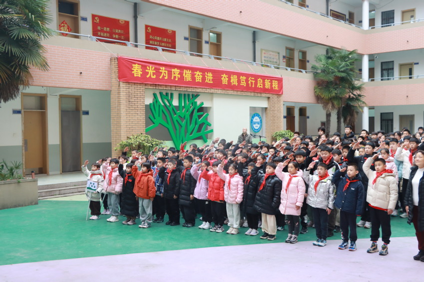 日月其迈,岁律更新;风传花信,雨濯春意。3月5日上午,附属学校全体师生怀着对新学期的美好向往,齐聚一楼天井,参加新学期首次升旗仪式。升旗仪式由附属学校小学部副主任张波老师主持。