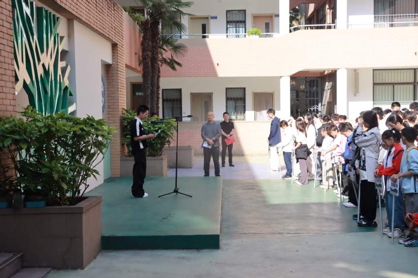 校长寄语:立志奋斗,成就卓越。宋虎在讲话中特别点赞师生“活力与战斗力并存”的精神风貌。他以“立志”“奋斗”“成己”三个关键词勉励全体学生:一是“立志”为先,胸怀家国,跳出“小我”,以青春之我服务青春之中国;二是“奋斗”为径,锤炼品格,在“训练+学习”双重任务中脚踏实地,拒绝躺平;三是“成己”为基,涵养品德,以拾金不昧的七年级跳水队林诗涵同学为例,倡导诚信担当。