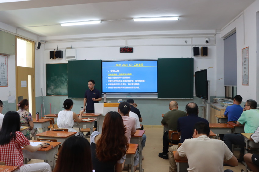 杨勇首先全面总结了附属学校本学期在安全、教学、班级管理、学生工作、师资建设等方面的各项工作,全体教职工团结协作,共同努力,圆满完成目标,教育教学质量稳步提升,学生在各项比赛中表现优异,赢得了广泛的赞誉。在此,杨勇对全体教职工辛勤的付出表示了感谢。但同时,他指出在日常教学工作中仍存在一些不容忽视的问题,比如教学过程中监控不够,教学检查力度不够,与提高教学质量相结合的教学研究不足等等。在接下来的假期中,希望全体教职工可以认真撰写教学案例、教学论文,以更加饱满的热情和专业的知识迎接新学期的挑战!