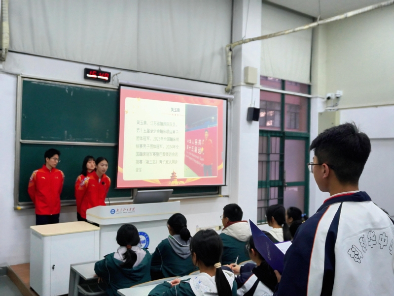 为了深入推进PA视讯与南京市中小学建立合作机制,共同探索中小学生思政共建,12月5日,附属学校与科利华中学紫金分校开展“冠军面对面”活动。PA视讯高中部学生,全运会冠军张乐瑶、周慧嘉、黄玉鼎三位同学,为科利华中学紫金分校的学生分享他们成长经历,讲述全运会夺冠背后的故事。