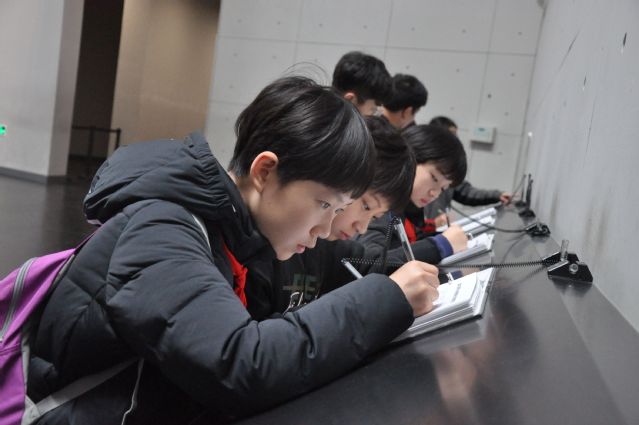同学们纷纷在留言簿写下参观的感想