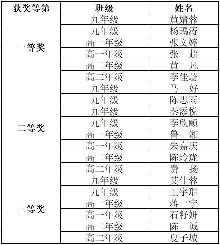 为了提高学生学习化学的兴趣,激发学生学习化学的潜能,化学教研组举行了“化学式书写竞赛”活动。获奖名单如下: