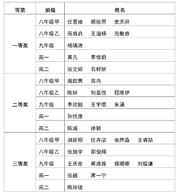 为了让学生体会到物理就在身边,激发学生对科学知识的兴趣,物理教研组举行了科普知识竞赛活动,获奖名单如下: