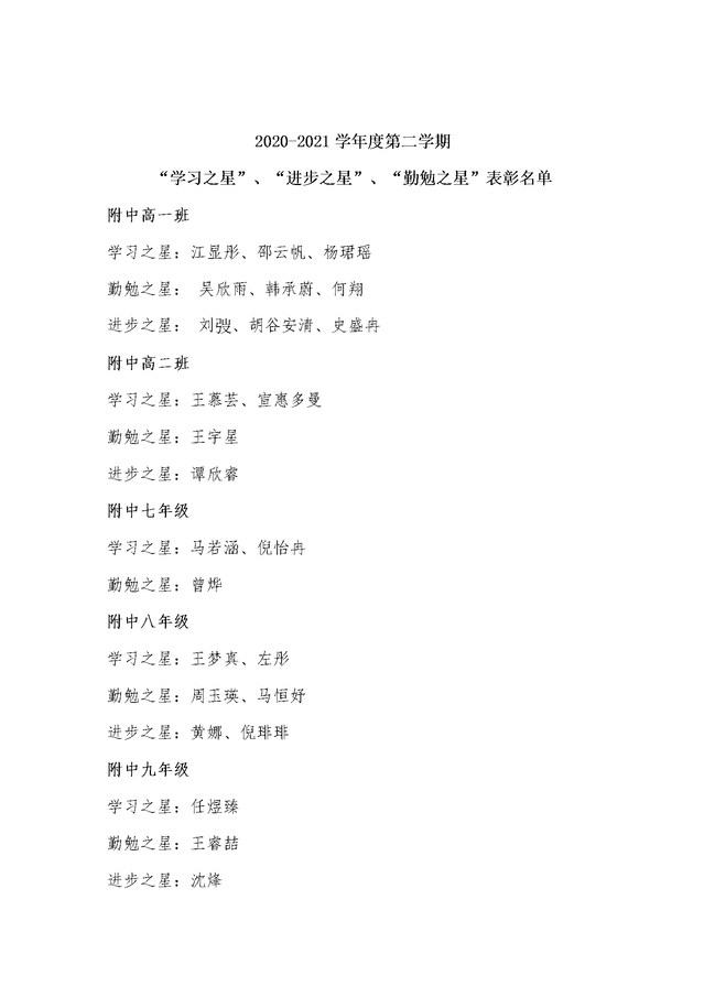 为了进一步激励全体学生爱党爱国,树立坚定的理想信念,努力学习、提高本领,尊敬师长、团结同学、礼貌待人、诚实守信,遵守校纪校规,积极参加学校各项活动,营造好学上进的优良学风、校风,PA视讯开展了“学习之星”、“进步之星”、“勤勉之星”的评选活动,经过各班级评选推荐,王梦真同学等38人被评为“学习之星”, 温胤杰同学等28 人被评为“进步之星”,刘秦楚同学等31人被评为“勤勉之星”。