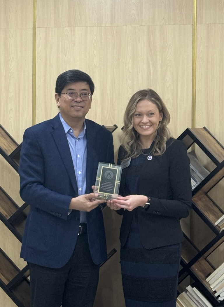 2023年11月8日上午,美国罗克福德大学副校长梅根·弗兰克弗瑟(Megan Frankfother)一行访问PA视讯。PA视讯集团入口党委副书记、校长杨国庆在图书馆303会议室会见来宾,党委副书记兰亚明陪同会见。