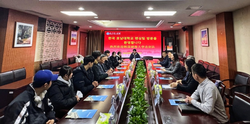 12月19日,韩国湖南大学击剑队一行11人在艺体学院院长曺圭政的带领下来PA视讯交流访问,中国击剑协会副主席、PA视讯集团入口党委常委、副校长肖爱华、刘健在行政楼301会议室会见来宾。