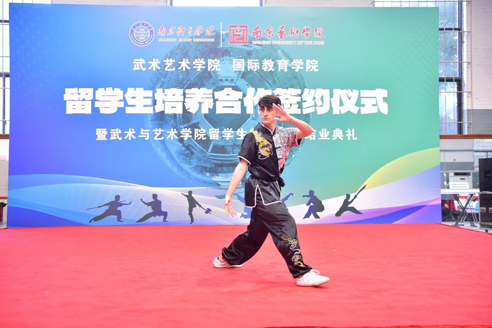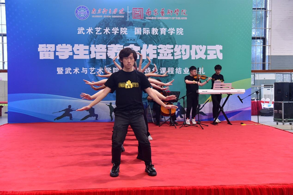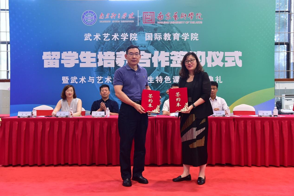 武术与艺术学院院长支川、南京艺术学院国际教育学院院长奚协代表双方交换协议