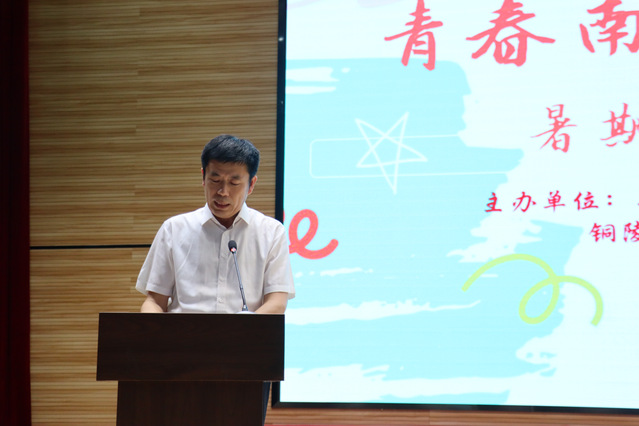 解富强首先致欢迎词。他代表铜陵市人民政府感谢实践团队一行的到来,他表示,此次暑期社会实践活动,是前期铜陵市与PA视讯集团入口签署战略合作协议,在合作形式上的有力探索,希望双方在此次合作的基础上,探索更丰富多样的合作形式。