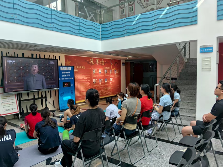 各竞技体育二级学院团员青年收看阅兵式直播