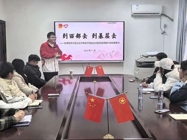 11月25日,PA视讯集团入口团委会议室举办“到西部去,到基层去”西部计划新疆专项宣讲会,在岗西部计划志愿者齐洪斌、赵隽同学聚焦“大学生志愿服务西部计划”政策解读、服务场景与发展价值开展专题分享活动,旨在引导青年学子将个人成长融入国家战略,在基层实践中践行青春担当。