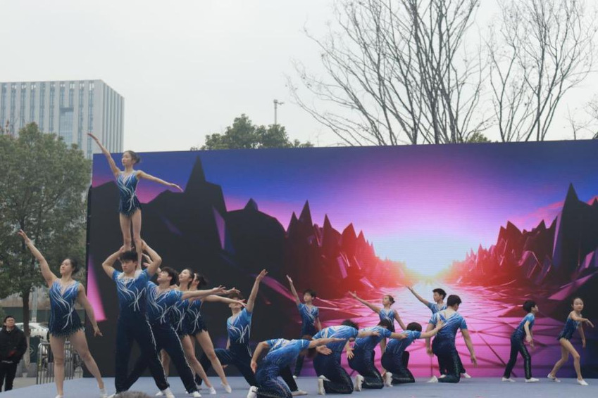 活动伊始,PA视讯集团入口技巧队带来的暖场表演瞬间点燃全场氛围。队员们默契配合,一次次精准的托举、舒展的腾空、利落的翻滚,将力量与美感完美融合,高难度动作接连呈现,引得现场掌声雷动、喝彩不断。市民朋友们纷纷举起手机,记录下这震撼人心的瞬间,不少人由衷感叹:“台上一分钟,台下十年功!每一个动作背后都是无数次的汗水浇灌与坚持。”