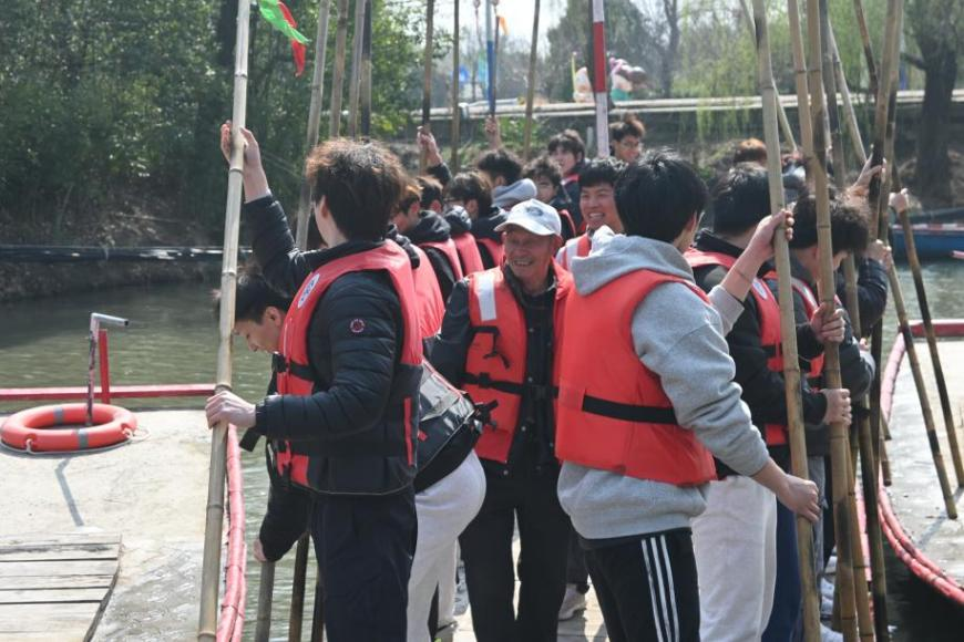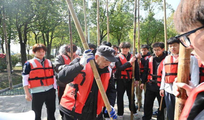 抵达溱湖训练场地,南体学子们迅速以饱满的精神状态投入训练。当地篙船传承人及教练为学子们细致讲解篙船的历史渊源、操作技巧与水上安全知识,手把手传授握篙、撑船等基础动作要领。学子们认真聆听、反复练习,身着救生衣登上船只开展实操训练,在水面上摸索篙船行进、转向的技巧,在协作配合中逐步掌握项目核心要领,训练现场学习热情高涨。