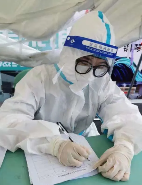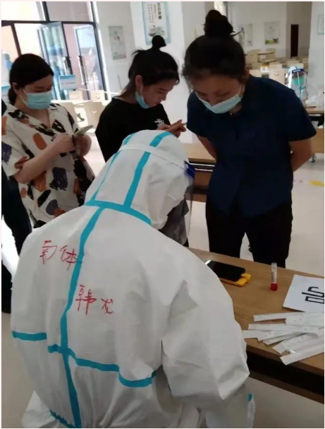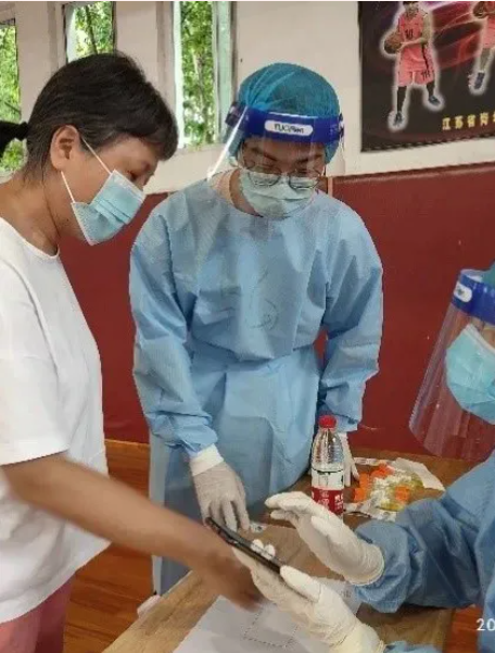 运动训练学院2020级学生郝婧煊从小在南京生活,在这次疫情防控期间,她志愿来到南京市鼓楼区江东街道江滨新寓社区毓舫诊所进行志愿服务,帮助社区工作人员完成核酸检测工作。她说:作为一名入党积极分子,在疫情防控的关键时刻,要迎难而上,挺身而出,用青春和热血肩负起服务社会、奉献社会的责任,用实际行动守护人民群众的健康和安全。