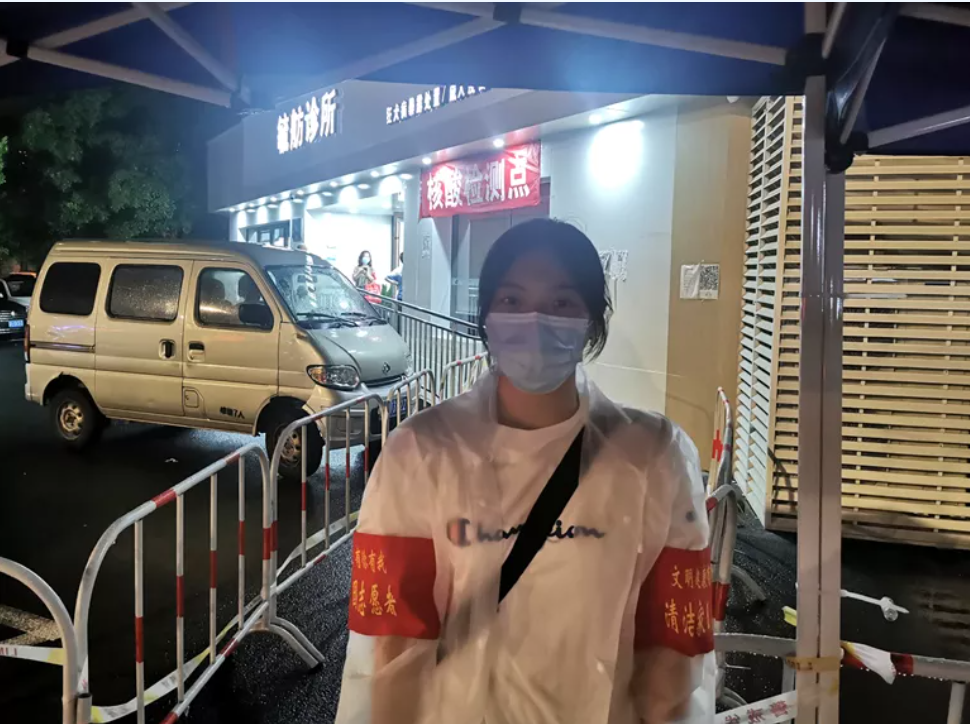 南京禄口疫情发生后,体育教育与人文学院2019级学生张天报名成为了社区的一名志愿者。他在社区完成了定点站岗、外来人员健康码检查以及协助进行核酸检测等工作,他说:通过此次志愿服务,感受到了医护人员与社区工作人员的艰苦与不易,这次志愿者经历让我成为抗击疫情的一份力量,以微薄之力为社会做出贡献,成为家人与社区群众的一道守护线。