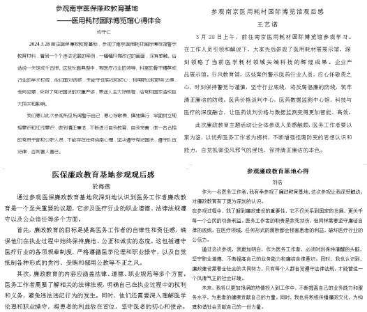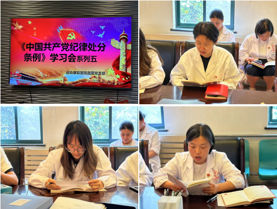 5月28日,支部开展线上与线下结合、学习与工作结合的主题教育活动,在外出差党员通过网络会议连线参加党纪学习教育讨论,畅谈《中国共产党纪律处分条例》中违反组织纪律行为、工作纪律行为的处分在实际工作中的心得体会。6月4日,组织党员结合学校“廉洁文化宣传月”活动及医德医风教育要求,开展《中国共产党纪律处分条例》违反廉洁纪律行为的处分章节原文逐条学习,让廉洁警示教育鲜活生动、入脑入心。6月11日,支部组织了医保廉政教育基地参观学习的观后分享交流,把党纪学习教育与工作实际紧密结合。6月18日,运动康复医院直属党支部开展党纪学习教育典型案例剖析专题讨论,学习讨论党纪学习教育专刊党员干部违纪违法典型案例汇编《南体钟声》上的真实案例,来自各行各业的典型案例令人警醒,大家深刻体会到党纪学习教育只有开始,没有结束,不能肤浅只能更深更实。