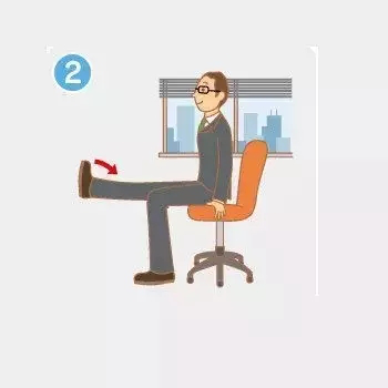 ①椅子不要做得太深,坐椅子的3分之1的位置。然后,力量集中在腹部,右脚往前伸,稍稍向上抬起。