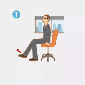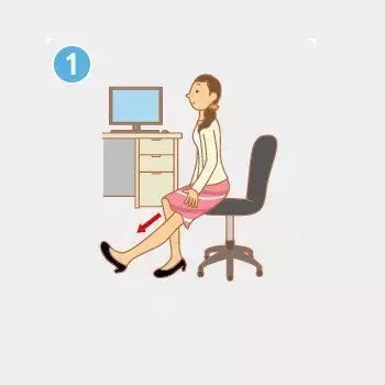①椅子不要坐得太深,坐椅子的3分之1的位置,挺直腰杆。同时左脚向前伸,脚后跟贴着地板,脚掌与小腿呈90度角,内膝盖往下压,把小腿肚和大腿后侧的肌肉拉紧。