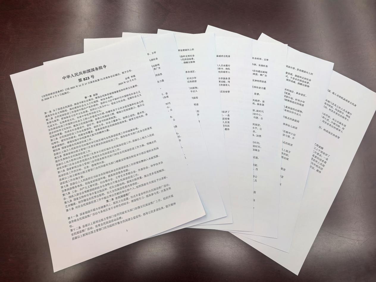 随后,会议专题学习了国务院颁布的《全民阅读促进条例》。馆员结合工作实际,对条例中涉及的阅读推广、服务保障、设施建设等内容进行了研讨,明确了图书馆在促进全民阅读中的职责与方向。