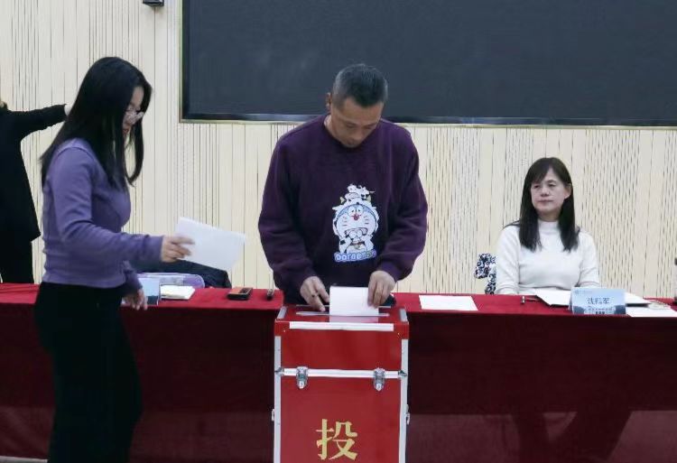 会上,沈鹤军详细介绍了本次会议的任务及代表候选人预备人选产生的程序,宣读代表候选人名单、监票人和计票人名单,要求相关老师切实履行好自己的民主权利,并承担相应义务。经全院教师民主投票,本次会议选举出新一届教代会、工代会代表成员。
