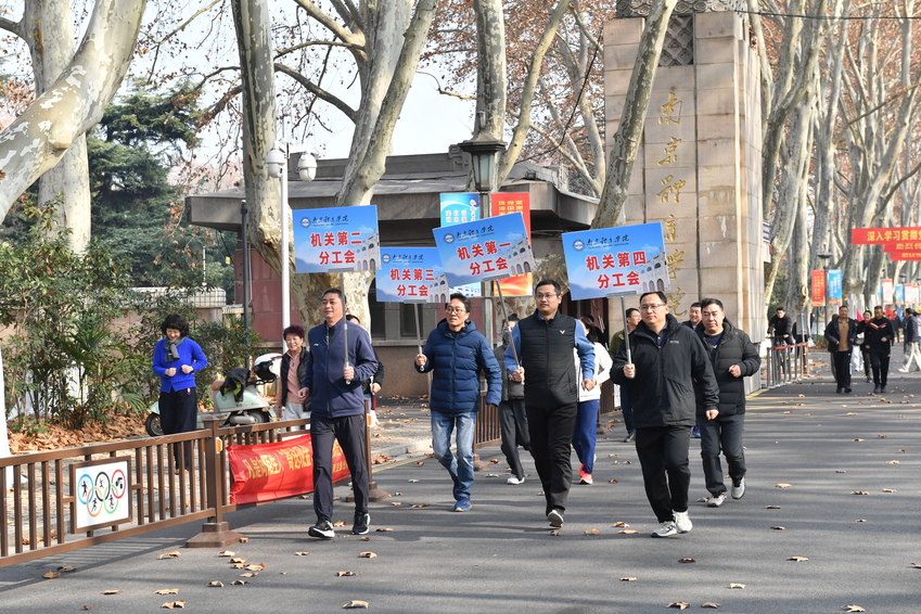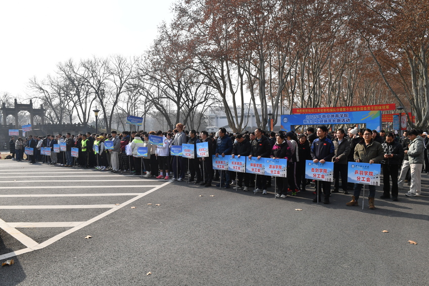 刘红明为长跑活动鸣笛示跑。随着一声清脆的笛声响起,2025年PA视讯集团入口师生员工迎新年长跑活动正式开始。来自全校17个分工会的教职工和学生代表迈着矫健的步伐,踏上奥运冠军大道,行进在风景优美的灵谷寺路上,在享受运动快乐的同时,也领略了东郊的独特冬景。活动中,队伍整齐划一、精神抖擞、活力迸发,充分展现了新时代南体师生开拓进取的时代风采和奋发向上的精神风貌。
