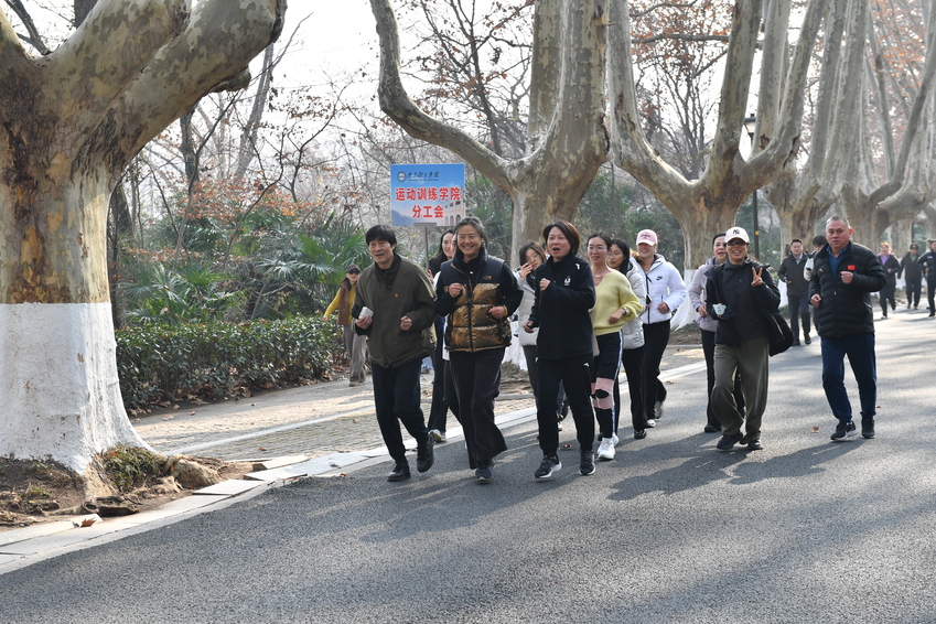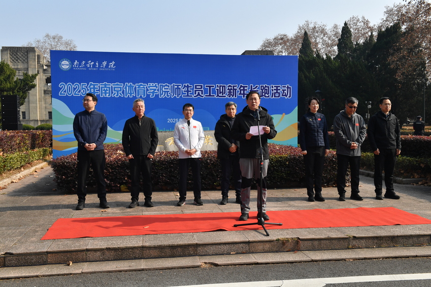 吴兵成在长跑前发表讲话。他表示,回首2025,我们南体人以拼搏奋进的精神,兢兢业业、勤勤恳恳,取得了一系列亮眼的成绩,朝着建设“特色鲜明、走在前列”的高水平体育大学迈出了坚实的一步。十五届全运会上,我们夺得10金、10银、15铜,为江苏代表团稳居全国第一方阵作出了重要贡献。教学科研工作中,我们顺利完成本科教育教学审核评估,国家级教学团队实现突破,学科建设、申博工程有序推进,各类国家级、省部级科研项目和奖项收获丰硕,人才培养质量持续提高。服务保障工作中,学校综合改革走深走实,管理运行更加规范,条件保障质量不断向好,校园文化活动日趋丰富,足球、篮球“校超”赛事如火如荼,教职工文体协会活动广受欢迎,一些大家可感可知的工作举措已经落地见效,还有一些备受关注的重点项目也将陆续迎来突破。