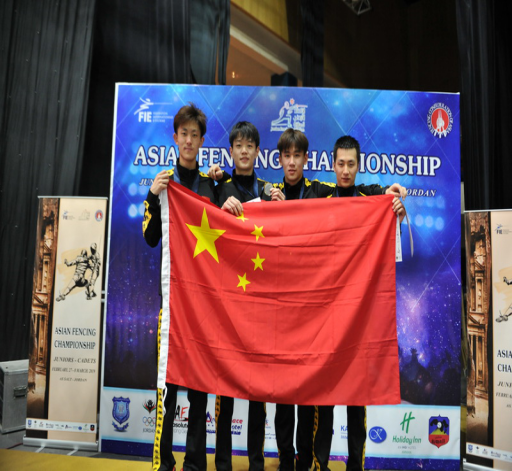 当地时间3月7日,2019年亚洲青少年击剑锦标赛青年组的比赛在约旦安曼进行,在青年组男子重剑团体决赛中,中国队以33比32战胜哈萨克斯坦队夺得冠军。
