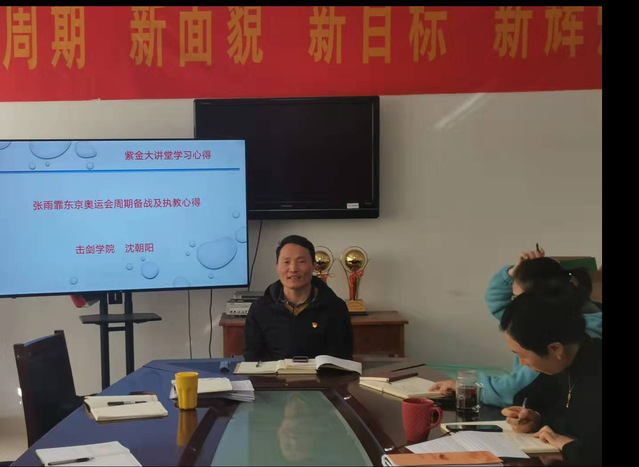 11月15日上午,击剑学院组织全体管理干部、教练员围绕上周紫金大讲堂张雨霏教练崔登荣所做《东京奥运会周期备战及执教心得》讲座进行业务讨论。