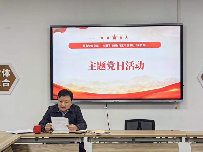 10月30日,为提高全体党员对教育工作的认识和理解,进一步推动教育事业的持续健康发展,教务处党支部开展了主题为“学习习近平总书记《教育论》”的主题党日活动。全体党员参加学习,支部书记李强主持会议。