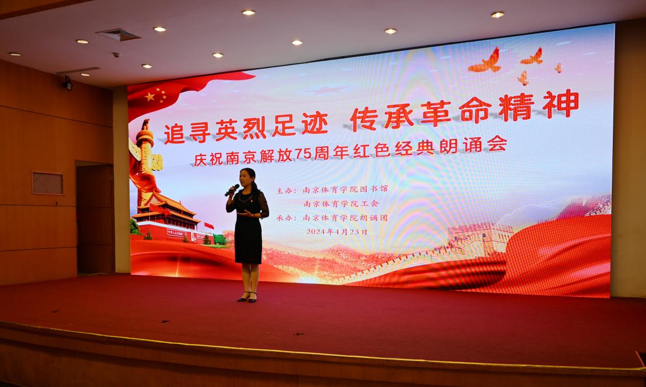 恰此时节,机关党委第九党支部在图书馆报告厅隆重举行了“追寻英烈足迹,传承革命精神”——庆祝南京解放75周年红色经典朗诵会主题党日活动,机关党委书记王利雅出席活动,支部党员代表王翠芳、翟守芳等参加朗诵活动,代支部书记李明华带领支部党员现场观看朗诵。