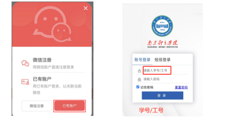 进入微信端,选择已有账号,选择图书馆,根据对接的方式,跳转图书馆登录入口,输入账号登录。