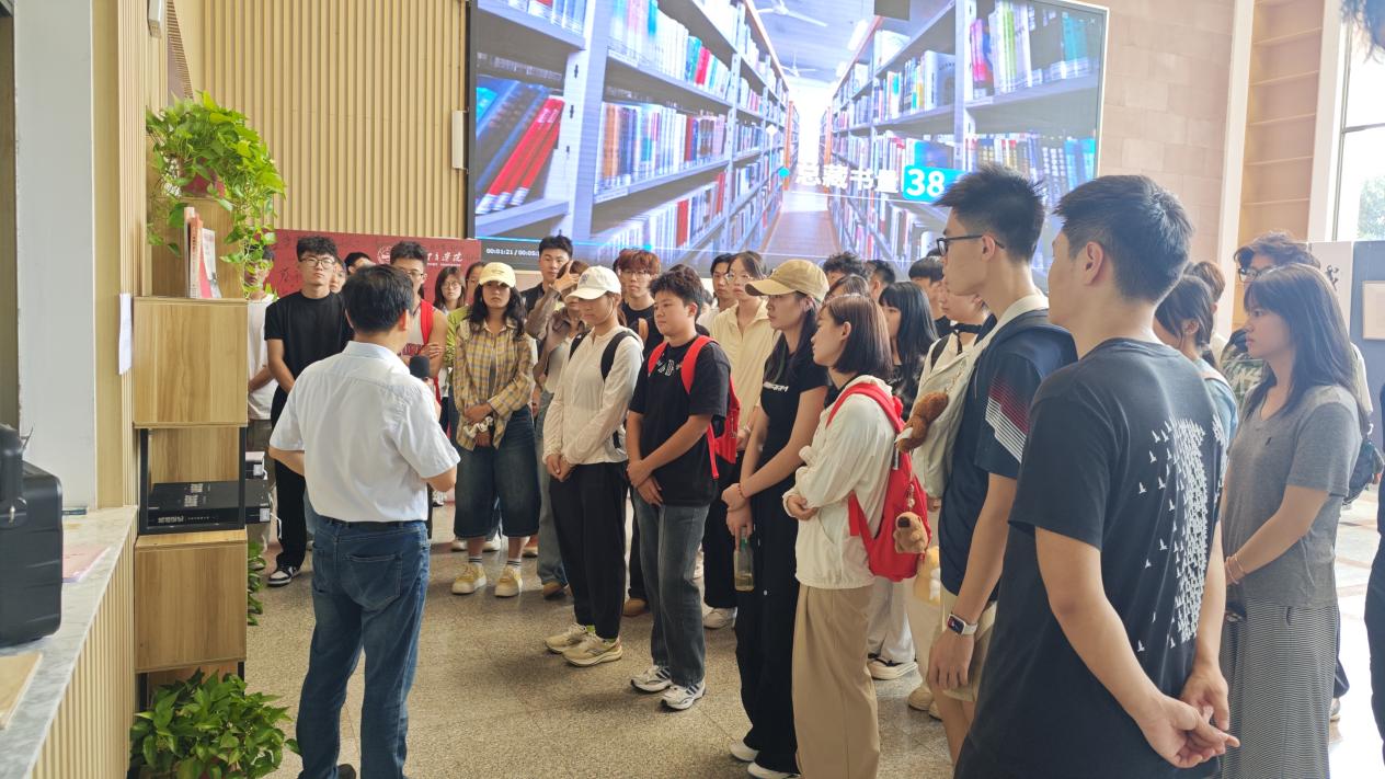 李明华简要介绍了图书馆策划本次主题书展的目的与意义,并向运动训练学院的新生介绍了图书馆精选的纪念抗日战争胜利暨世界反法西斯战争胜利80周年主题图书,启发新同学如何选读优质图书、如何从各类主题推书中汲取学习与研究灵感。