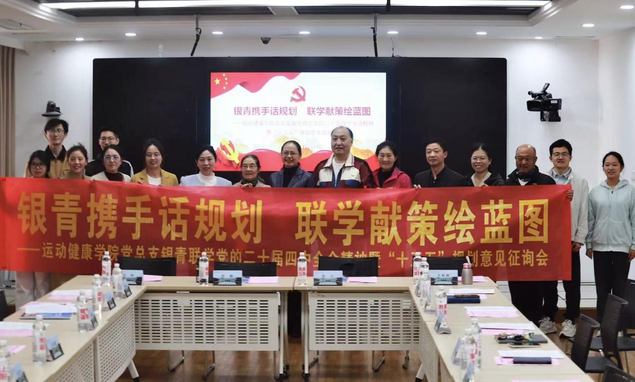 为深入学习贯彻党的二十届四中全会精神,凝聚银发智慧与青春力量,11月11日下午,运动健康学院党总支在图书馆第二报告厅举办银青携手话规划,联学献策绘蓝图——银青联学党的二十届四中全会精神暨“十五五”规划意见征询会。校关工委执行副主任、原党委常委、副校长李江,网球学院关工委执行副主任尤维娜,原运动健康科学系主任孙飙,原运动健康科学系副主任马林,运动健康学院领导班子成员,学院关工委部分成员,教师代表、学生代表共同参会,会议由学院党总支副书记刘莉主持。