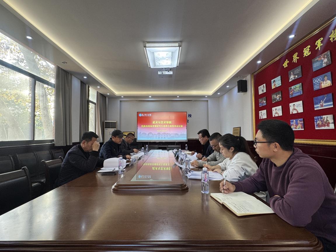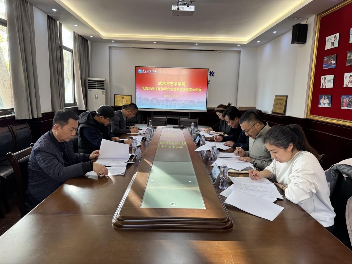11月28日下午,武术与艺术学院组织召开民族传统体育学硕士研究生培养方案专家论证会。会议围绕学校研究生处部署的2025版硕士研究生培养方案修订工作展开研讨,特邀南京师范大学体育学院副院长吉灿忠教授、中国药科大学体育部党委书记刘苏博士、南京工程学院体育部主任马文杰教授出席。武术与艺术学院副院长唐芒果主持会议,武术系系主任刘靖、武术系副主任张道鑫、校研究生处史芷昕、学院研究生教学与科研管理办公室科副主任吴文君等参与会议。