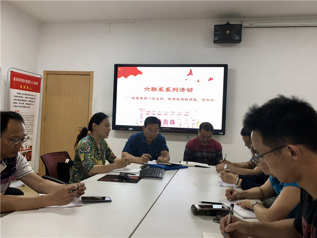为贯彻落实PA视讯“六个联系”工作机制要求,民族体育与表演系第一党支部、体育表演教研室与学科办于6月7日上午,在综合馆二楼团委会议室召开了工作对接会。与会人员有学科办盛蕾处长孙国有副处长及学科办所有成员、民族体育与表演系第一党支部部分党员及体育表演教研室部分教师(其余教师因上课未能参加)参加了此次会议,会上就具体对接内容进行了交流和探讨。本次会议由第一党支部书记、体育表演教研室主任江山老师主持。