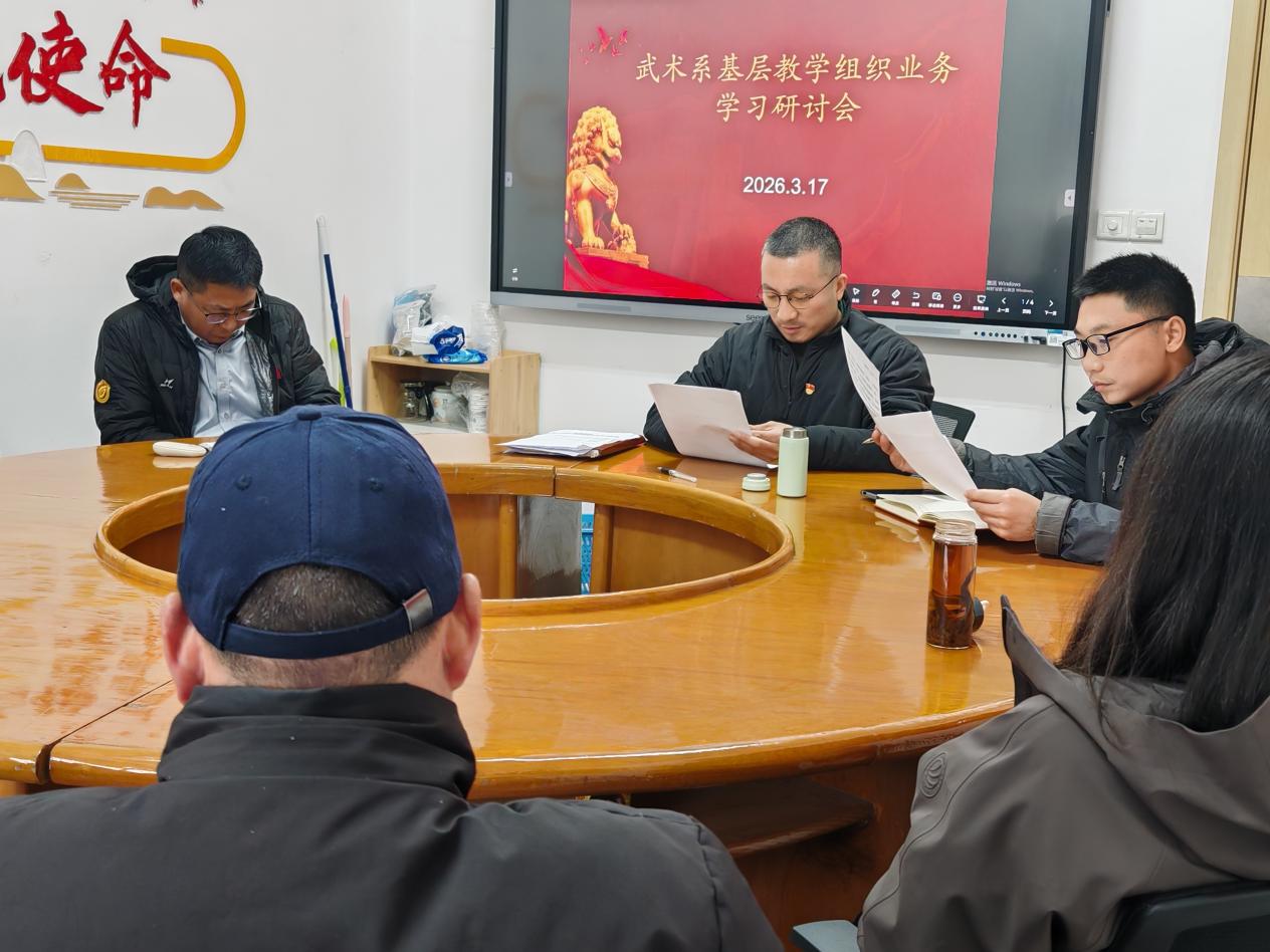 为积极响应学校关于加强基层教学组织建设的号召,深入领会和贯彻国家最新教育政策精神,3月17日下午,武术系组织全系教师开展了2025-2026学年第二学期基层教学组织业务业务集中学习活动。本次学习围绕教育部近期发布的关于健康学校建设、青年教师队伍建设及学生体质强健计划等多项重要指导意见展开深入研讨。