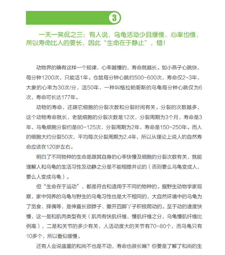一天一笑侃之三:有人说,乌龟活动少且缓慢,心率也慢,所以寿命比人的要长,因此“生命在于静止”,错!