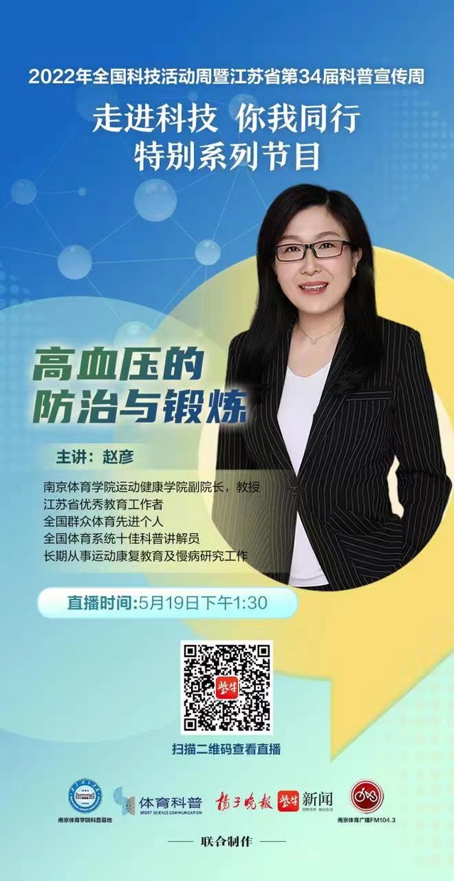 拓展科普平台,在科普服务上求实效。为迎接2022年全国科技活动周暨江苏省第34届科普宣传周,PA视讯科普基地与南京体育广播FM104.3运动处方“科学锻炼测评练”栏目,联合推出“走进科技 你我同行”特别系列节目。节目还通过扬子晚报、紫牛新闻等媒体推广宣传。PA视讯孙飙教授、赵彦教授和戴剑松副教授等受邀参加主讲系列节目,节目内容既包含高血压、糖尿病等慢性病的防治与锻炼,又涵盖儿童、老年和女性等群体的运动锻炼指南,满足了不同群体的健身需求,深受广大听众喜爱。其中,由赵彦教授主讲的“高血压的防治与锻炼”在南京广播新媒体平台的播放量高达到5.6万人次。
