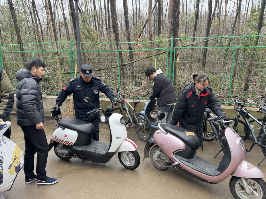 同学们在校保卫处工作人员带领下,一起前往宿舍楼和教学楼,对存在安全隐患、违停违放的电动车进行了集中排查与整理,为平安校园建设贡献青春力量。本次排查总体情况良好,希望同学们在今后的学习和生活中绷紧安全第一的思想之弦,防微杜渐,筑牢安全防线。