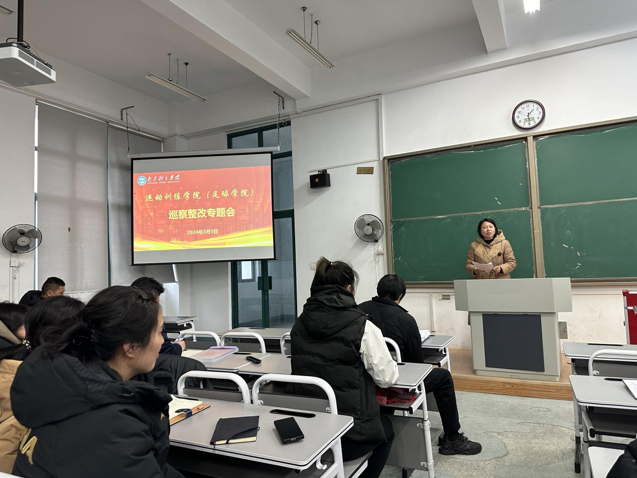2024年3月5日中午,运动训练学院在仙林校区教学楼321教室召开巡察整改专题会,大会由学院党总支书记葛见珠主持,学院全体教师参加。
