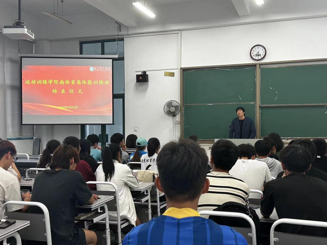 2024年5月22日下午,运动训练学院体能训练班第一期结业仪式在仙林校区教学楼321举行。运动训练学院党总支书记葛见珠,院长赵琦出席结业仪式,并邀请江苏体科所陈伟老师、体能系主任王智明、副主任谢恩礼及部分教师出席仪式。仪式由胡鑫老师主持,首届体能训练班和大一体能专业班的全体学员参加活动。