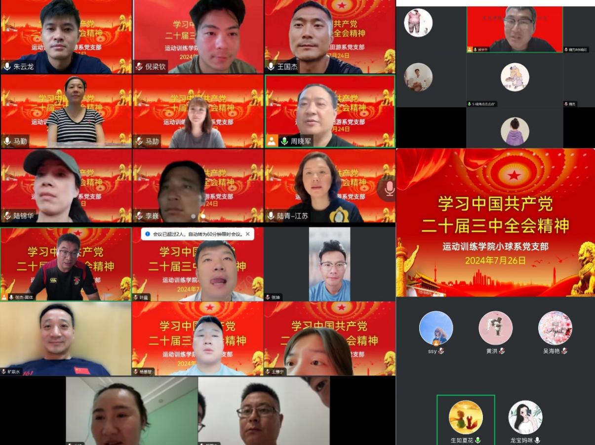 党的二十届三中全会审议通过了《中共中央关于进一步全面深化改革、推进中国式现代化的决定》,科学谋划了围绕中国式现代化进一步全面深化改革的总体部署,强调“全党上下要齐心协力抓好《决定》贯彻落实,把进一步全面深化改革的战略部署转化为推进中国式现代化的强大力量”。运动训练学院广大党员连日来深入学习贯彻党的二十届三中全会精神,反响热烈。