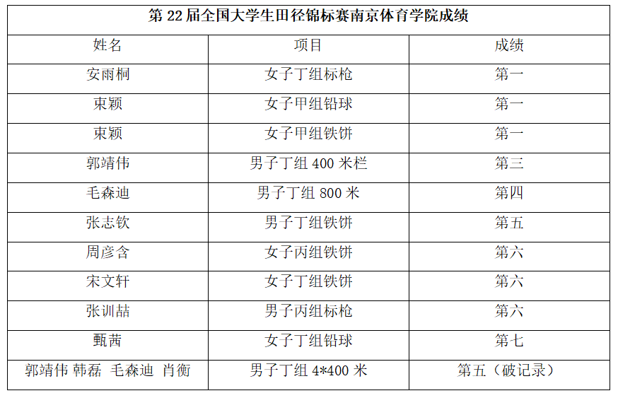 随着六天的激烈角逐,2024年全国大学生田径锦标赛圆满结束。南京体院大学生田径健儿,用汗水书写了属于自己的辉煌,用奋斗展现出新时代青年的风采。我们将继续发扬拼搏精神,努力训练提高实力,为南体师生带来更多精彩瞬间!