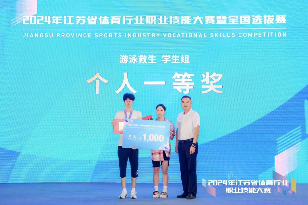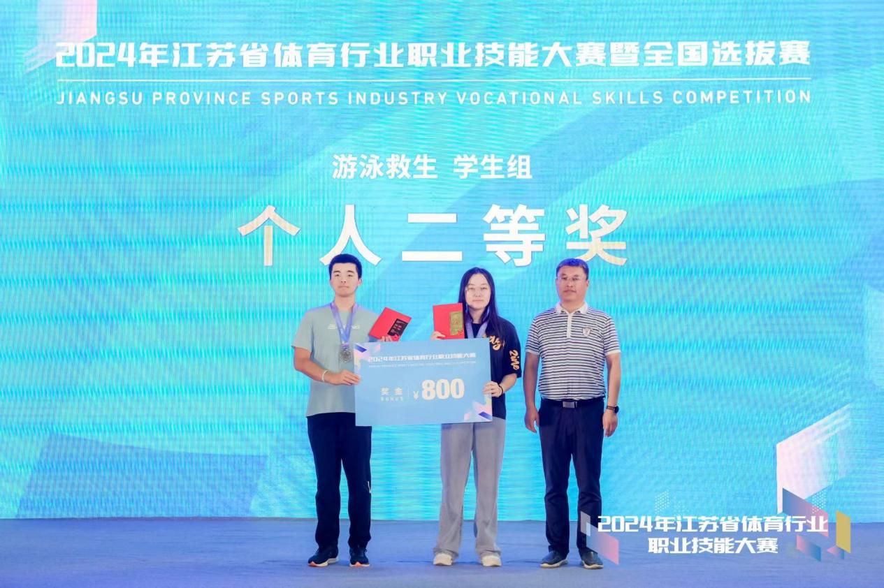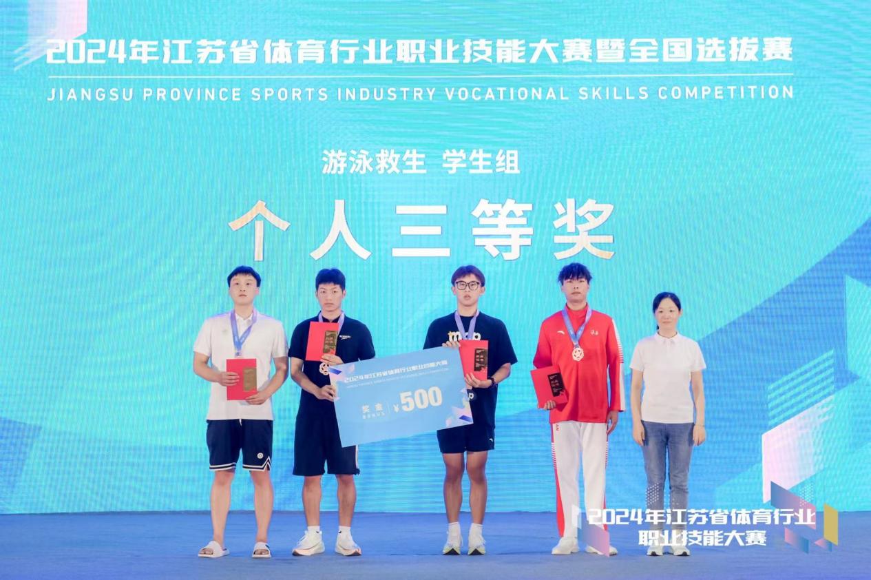 2024年9月9日至11日,江苏省体育行业职业技能大赛暨全国选拔赛在徐州市奥体中心游泳馆举行。本次比赛由江苏省体育局、中共江苏省委省级机关工作委员会、江苏省总工会、江苏省教育厅主办,江苏省体育人才流动服务中心、江苏省体育行业特有工种职业技能鉴定站和徐州市体育局承办。游泳救生职业技能比赛分为职工组和学生组,全省40支代表队、三百余人参赛。南京体院运动训练学院经过层层选拔和训练,组织了六名学生参赛并取得了优异成绩。