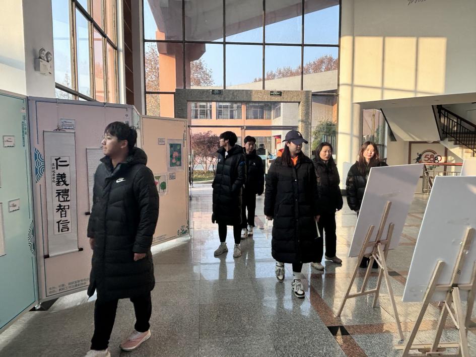 随后,学生党员前往本部图书馆廉洁文化作品展,进行集体参观学习。此在参观过程中,预备党员们被一幅幅生动的艺术作品深深吸引。他们仔细观看每一幅作品,认真观看作品的介绍,深入了解作品背后的廉洁理念和故事。其中,一幅以“莲花”为主题的作品引发了大家的热烈讨论。作品以笔墨丹青为媒介,描绘了莲花高洁的形象,寓意着党员干部应以莲花为镜,树清廉之本,自省修身立德,锻造廉洁品格。