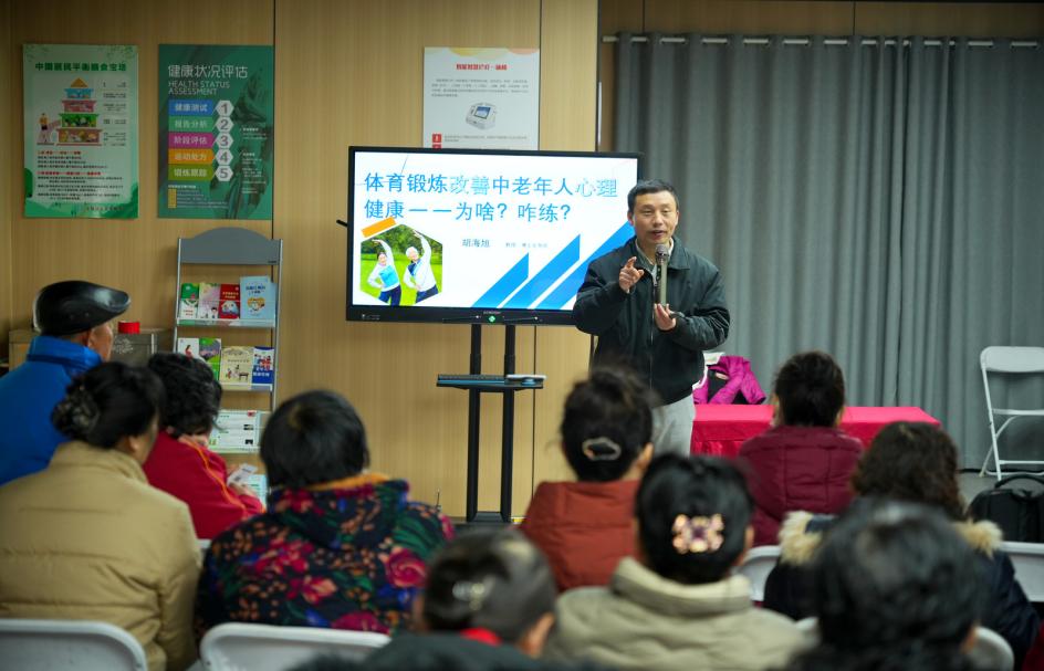 3月5日上午,南京市江宁区举办“学雷锋,送健康”全民健身志愿服务主题活动。体能支部书记胡海旭自发报名参与,为江宁上坊社区医院带来题为《体育锻炼改善中老年人心理健康——为啥?咋练?》的公益讲座。讲座聚焦中老年人心理健康,结合体育锻炼的科学方法,深入浅出地讲解锻炼对心理健康的积极影响,并社区居民广泛关注的健身与健康问题进行现场答疑,受到社区居民的热烈欢迎。