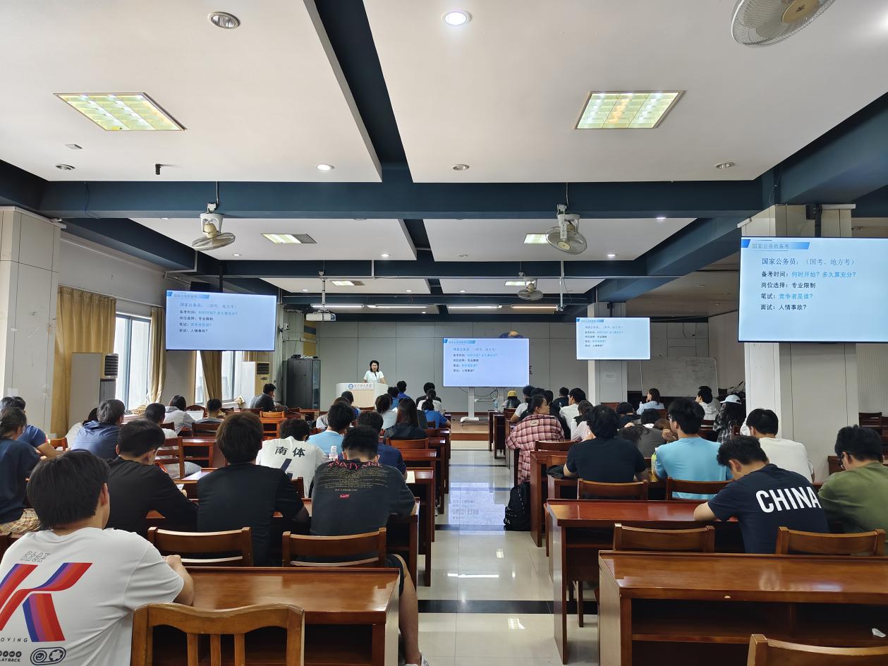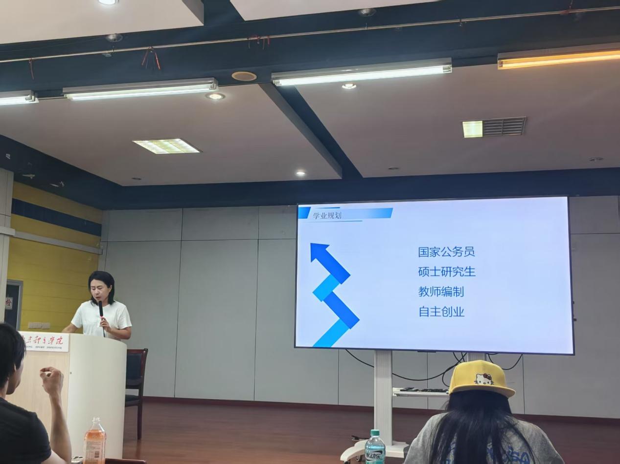 在考编主题讲座上,主讲人孙芹老师系统梳理考编类型,对编制特点、报考条件及发展前景进行了深入解读,帮助同学们构建起清晰的考编认知框架。针对考试方法,她分享备考策略,强调笔试要注重基础积累、系统复习,合理分配时间,通过真题演练掌握规律。提到面试环节,她特别强调,面试的考察内容对于运动训练学院的学生来说,具备天然的竞争优势。随后,考编成功的学长学姐们走上讲台,分享他们的“上岸”经验。